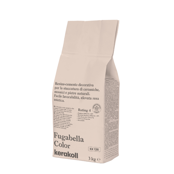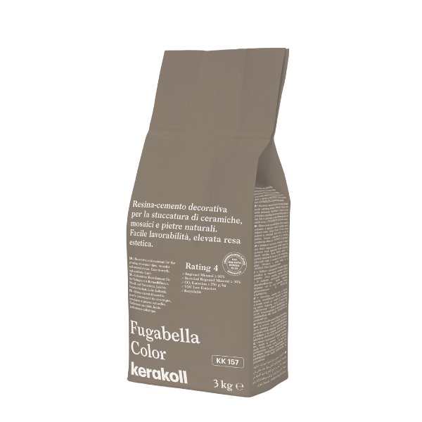 Résine à l’eau hypoallergénique pour le jointoiement étanche et antitache avec un effet soie du grès cérame, des pierres naturelles et de la mosaïque en pâte de verre.